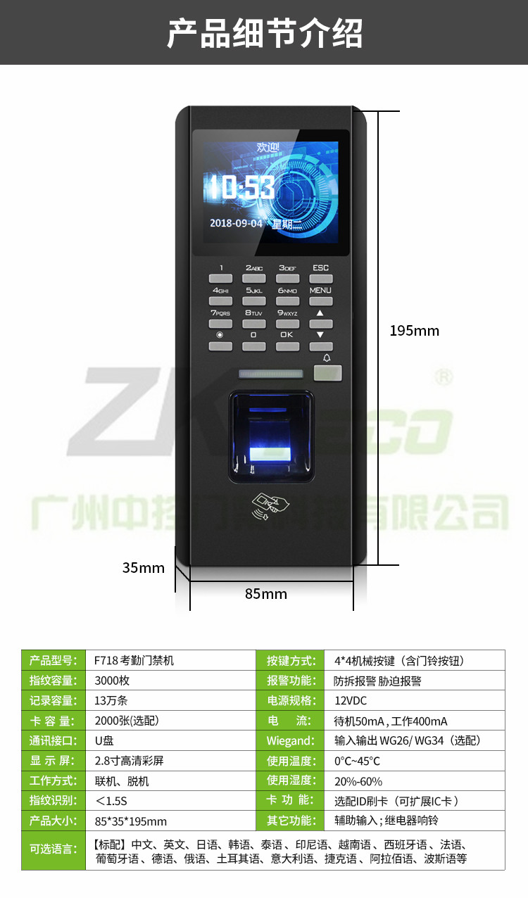 指紋考勤門禁一體機(jī)F718