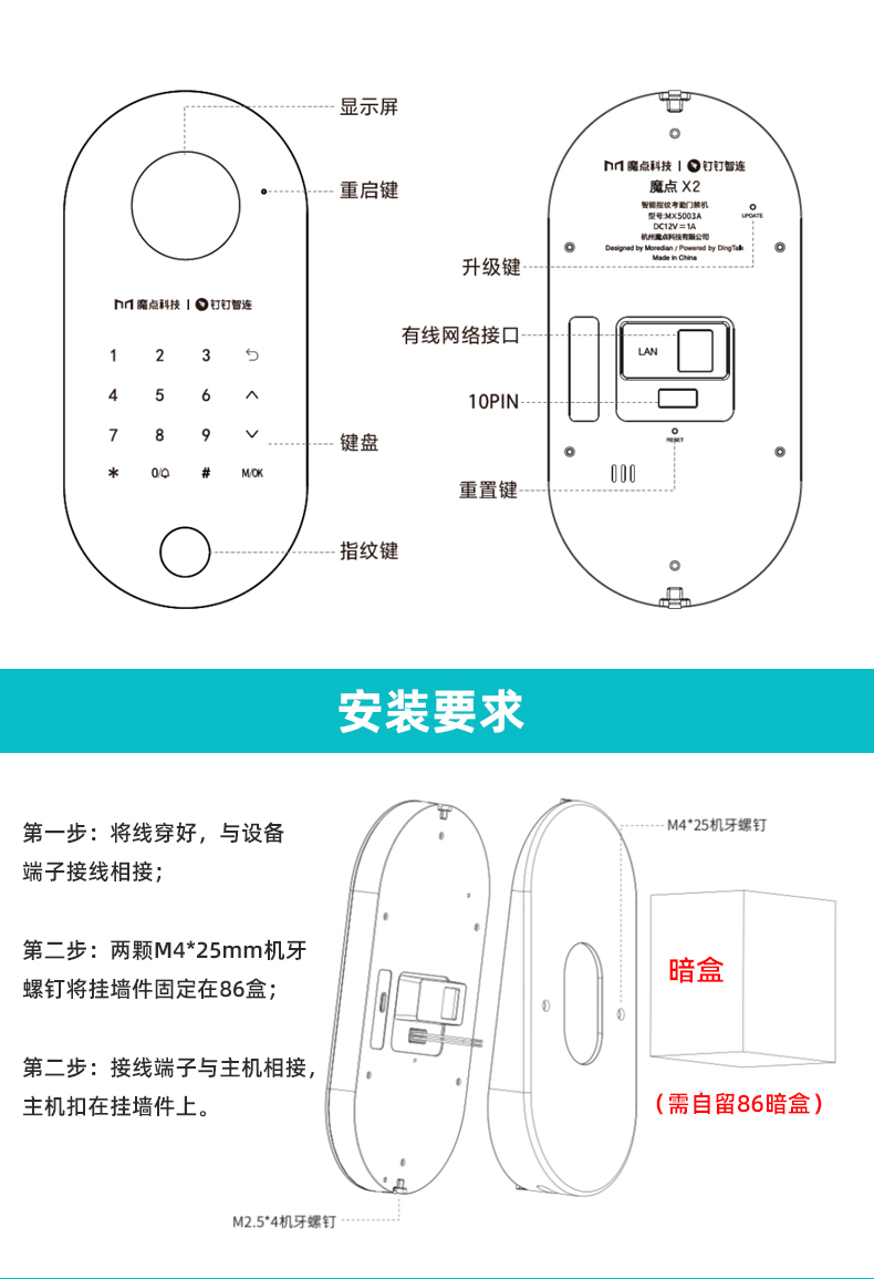 釘釘魔點(diǎn)X2門(mén)禁 智能指紋考勤機(jī)
